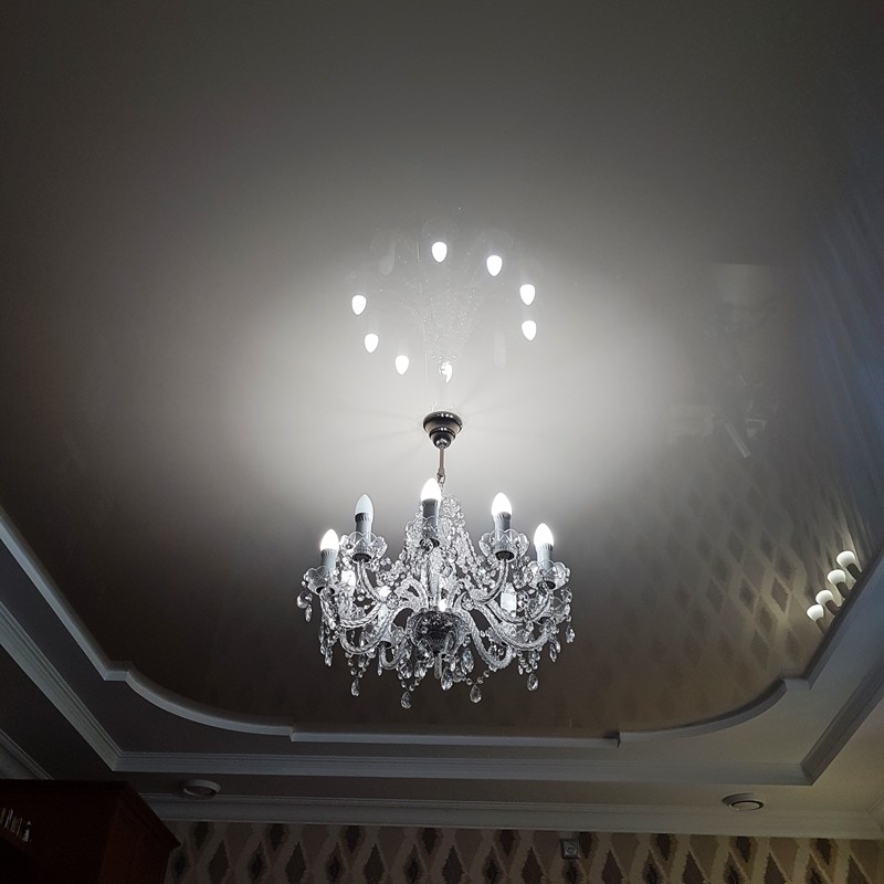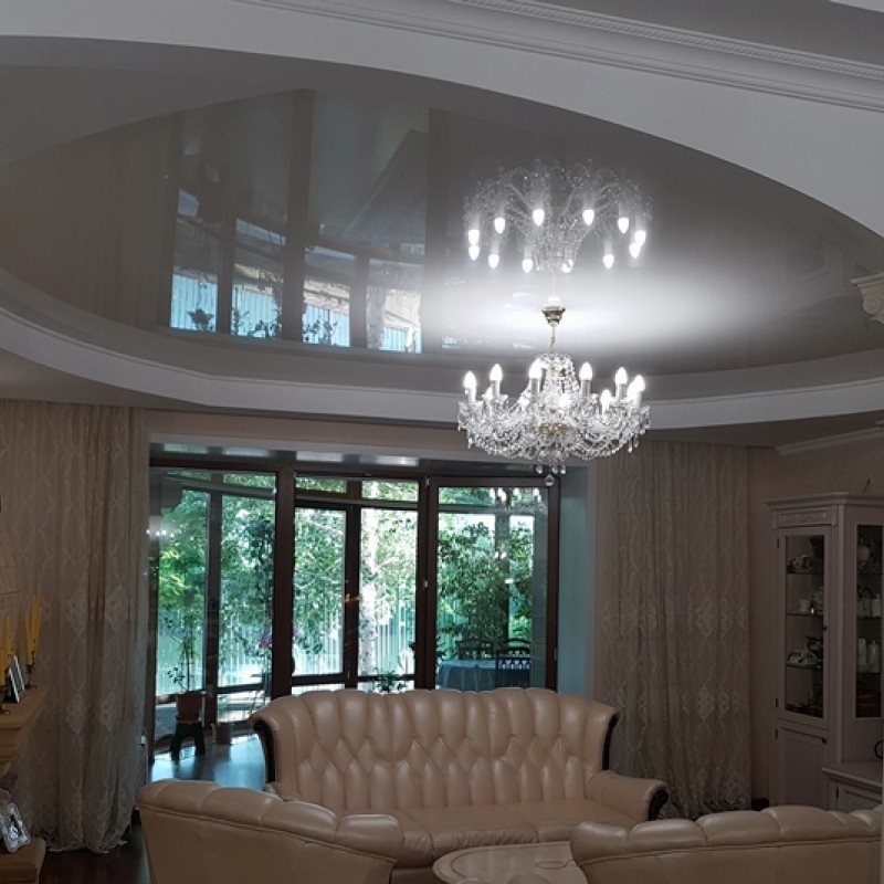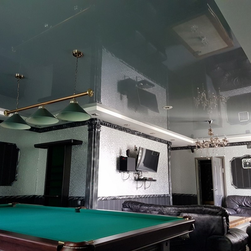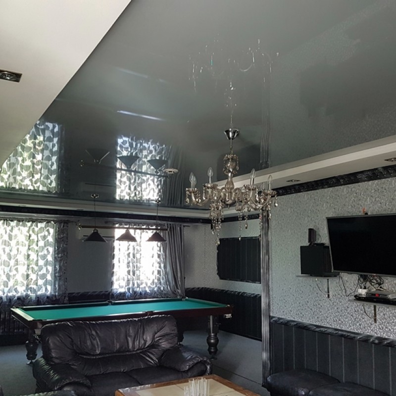 Единственный момент, который нужно учитывать - это незначительная потеря высоты помещения. И даже это будет незаметно! Натяжные потолки создают ощущение расширения пространства, причём это верно как для светлых, так и для тёмных тонов. Как ни удивительно, но чем темнее потолок, тем выше его способность отражать свет (по подобию зеркала). Таким образом, самым зеркальным является абсолютно чёрный натяжной потолок. Он действительно работает как зеркало! В любом случае, какой бы цвет потолка вы ни выбрали, глянцевый натяжной потолок даст эффект увеличения высоты потолка. Зрительно потолок будет казаться выше, а пространство - больше.
